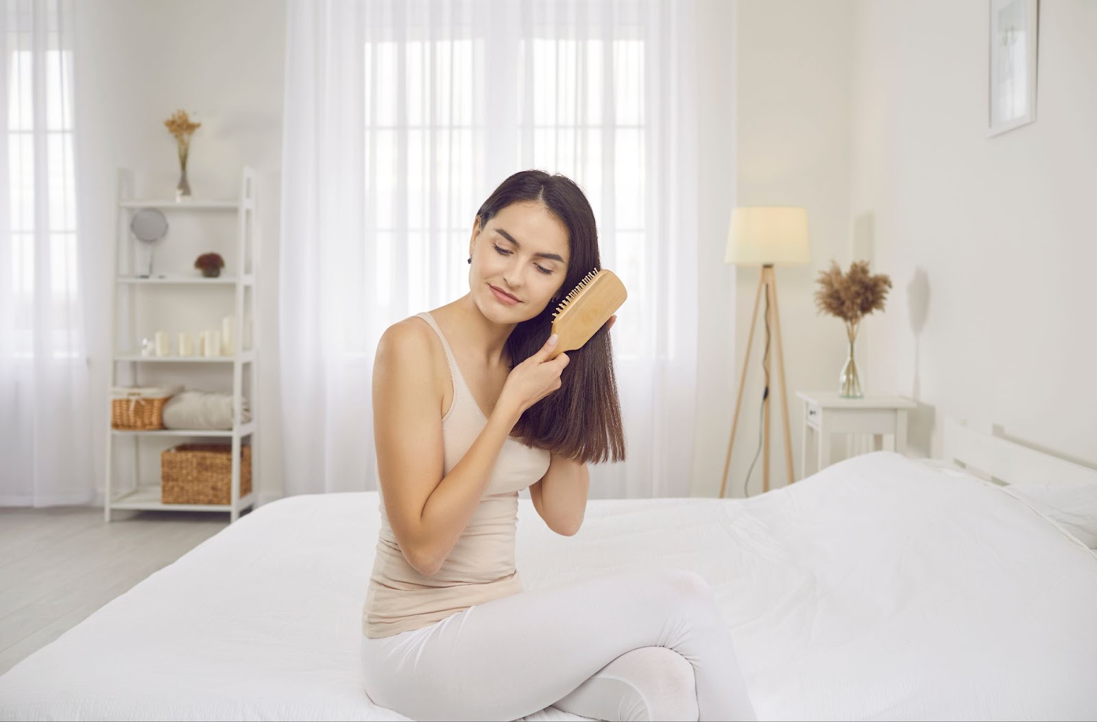 目が荒い大きいコームで優しくとかしてあげてください。髪のほつれを取り、付着したホコリやスタイリング剤を浮かせる効果があります。